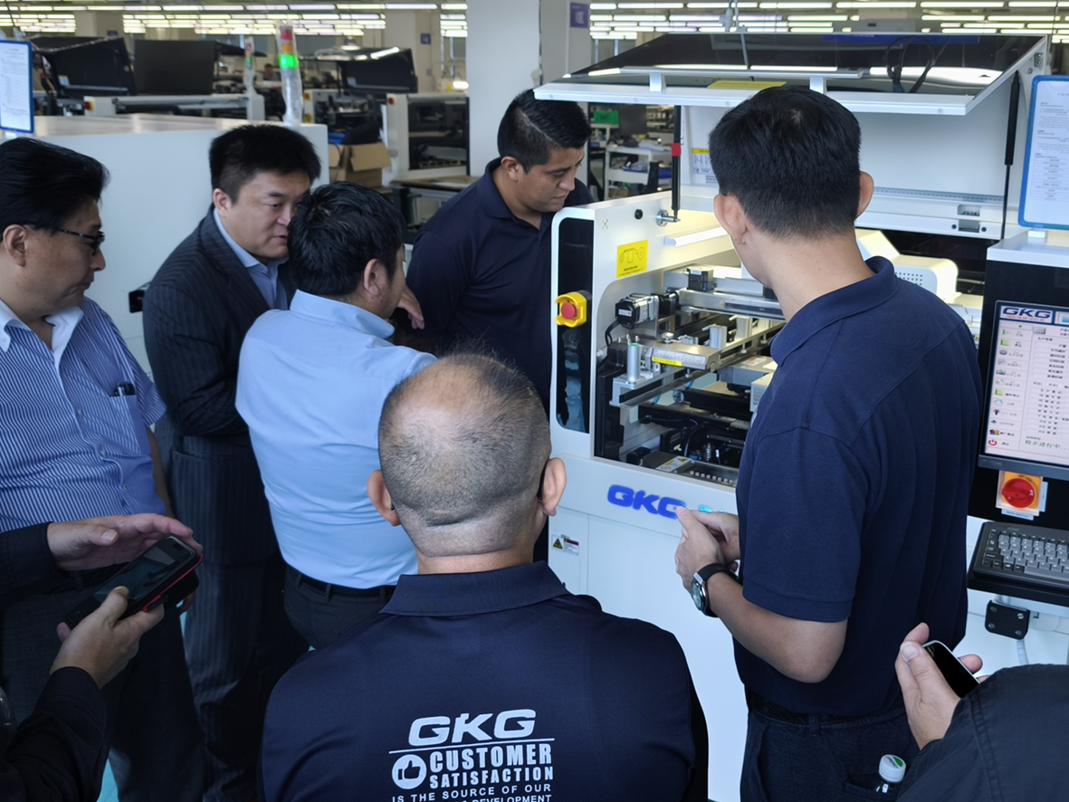 GKG Precision Machine was honored to host a 30-person international delegation at our Dongguan headquarters today. Guests traveled from Brazil, India, Indonesia, Japan, Russia, Malaysia, and Mexico to join a guided visitation showcasing GKG’s latest advances in SMT printing, dispensing, die bonding, and automation technologies.